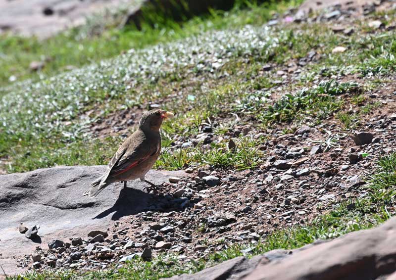 ■分布:北アフリカ、トルコからパキスタン北東部にかけて分布。 ■生態:岩の多い山腹、特に高地に生息する。植生の少ない荒れ地で見られることもあり、岩の割れ目に巣を作ることもある。種子を食べ、冬には群れをなして農地に降りて餌を探す。 <Wikipediaより> | |