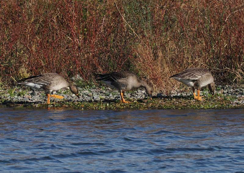 ◆2025-12-11 (相模大堰周辺) 快晴 (ZD340/1.4X/OM-1U/(840mm相当)) 面積削減:上から1/12,1/4x2。![]() ![]() ![]() ![]() ![]() ![]() ![]() ◆2022-12-8 (滋賀県長浜市(湖北野鳥センター)) 薄曇り (ZD150-500/OM-1/(1000mm相当)) 面積1/4に削減。 ![]() ![]() ![]() ◆2018-12-17 (蕪栗沼/宮城県) 薄曇り (F340/1.4X/D500(630mm相当)) 面積1/4に削減。 ![]() ![]() ![]() ![]() ![]() ◆2013-1-14 (片野鴨池/石川県加賀市) 曇り時々小雨 (F540/1.4X/D7000(1050mm相当)) 面積2/3に削減。 ![]() ![]() ![]() ![]() ![]() ◆2010-11-2 (湖北野鳥公園/琵琶湖) (デジスコ:TSN884/TE20H/LX5(2250mm相当)) 面積削減無し。 ![]() ![]() ![]() 右から4羽目のこちらを向いている個体は隣より小さく、額の角度も大きい。オオヒシクイは体長:90-100cm、ヒシクイは78-89cmであるので、ほぼ1割小さい。よって、この個体はヒシクイではなかろうか。 ![]() |