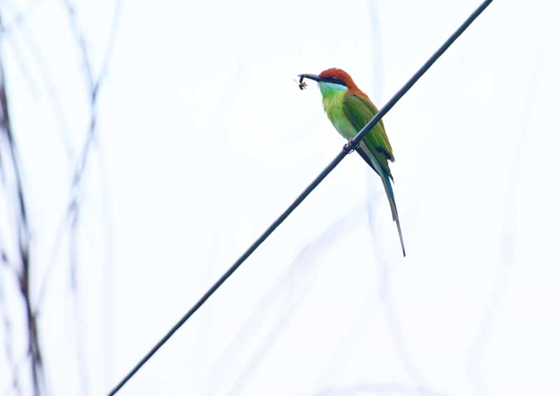 探鳥記 ◆2025-11-19 フィリピン 画像に人工物が入るのは潔しとしないが、しばしば電線に留まるので仕方なく撮影している。 | |
