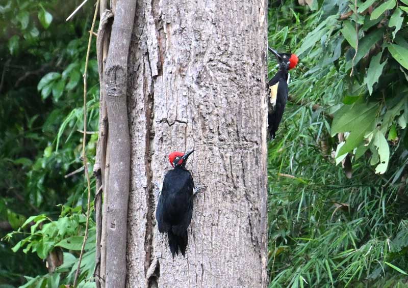 探鳥記 ◆2025-11-20 フィリピン 日本人のバーダーにとってキタタキは特別な意味を持つ。かつて絶滅した日本の野鳥の中で真っ先に挙げられる種だからである。最大の敬意が払われていたと感じる。 18日に初めて見られたとき、体の大部分は葉に隠れ赤い頭からようやくキタタキと識別できる酷い条件だった。翌日にはよい画像が撮れるとは知る由も無いことから大いに落胆した。 翌日、翌々日とガイドも特別な注意を払って見つけてくれたおかげで、かなり遠方であったがほぼ満足する画像が撮れた。 キツツキ類には5種出遇ったが、どうも現れる定番の枯れ木があるようだ。 | |