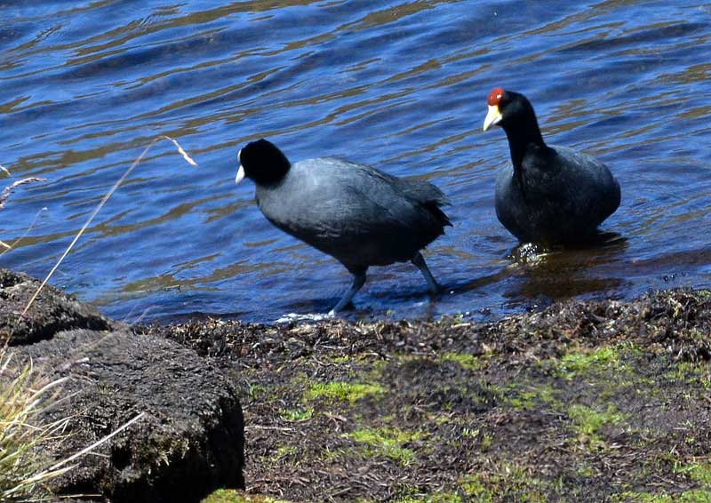 探鳥記 ◆2013-4-27 アンティサナ国立公園の湖に10羽程度棲んでいた。この湖の湖面は海抜3950mである。日本でのオオバンは低地の湖沼や海岸でしか見ていないので本当にびっくりした。 額が赤いもの、白と黄色のもの、そして黄色のものがいたが♂♀の区別ではないようだ。 岸辺に近づくのを禁止されたので遠方から撮るしかなかった。 | |