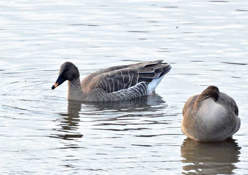 探鳥記 ◆2022-12-8 滋賀県長浜市 嘴の中で何回もヒシクイを転がしていたが、最後には水に落とした。 ◆2013-1-14 片野鴨池 オオヒシクイとヒシクイの区別は難しく、今までここにオオヒシクイとして挙げたのも自信がないが、この鴨池で撮った個体はまさにオオヒシクイであろうと推定する。嘴が群を抜いて長くて大きい。 ◆2011-11-30 福島潟 シジュウカラガンがいるとの現地情報で訪れた福島潟。コハクチョウ、オオヒシクイとも3000羽前後越冬している。 一方、シジュウカラガンは58羽いることをこの目で確認し、撮影した。最近のmtDNA研究により、シジュウカラガンは カナダガンの一亜種ではなく独立種とされた。 ◆2010-11-2 湖北野鳥公園 11月2日時点でオオヒシクイが大部分であるがヒシクイも混じっているという湖北水鳥センターの情報を電話で得た。従ってヒシクイがいるという前提で、オオヒシクイの特徴を勘案して選んだ。 ◆2010-10-25 福島潟 飛んでいるのを下から撮影しているので確証はないが、地元のバーダーが確信を持って断定したので信頼した。 | |
