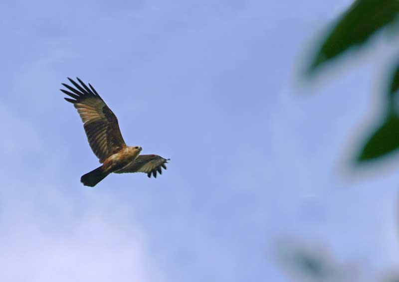 探鳥記 ◆2011-10-7&8 かなり遠かったがシロガシラトビが絵になる格好で留まっていた。 ◆2010-10-5 フレーザーヒルに行く途中で寄ったクアラグラの空を飛んでいた。肉眼でも頭が白いことが認められた。初見と確信して撮るのは心躍る楽し瞬間である。 一羽が動物の骨のようなものを足につかんで嘴でつつきながら飛んでいた。 | |