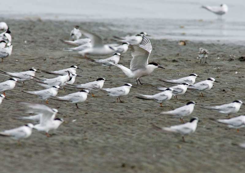 探鳥記 ◆2024-4-11 実に13年ぶりに掲載。 ◆2011-6-6 2,300羽のコアジサシのなかに、10羽前後の群れがいた。 ◆2010-8-28 コアジサシがおおよそ数百羽群れていた。群れの探鳥から帰ってくるバーダーに聞いたら、「アジサシを撮っていた」と笑顔で教えてくれた。群れの中を丹念に探すと、コアジサシを二回り大きくしたような鳥が数羽見つかった。あれがアジサシに違いないと確信した。 | |