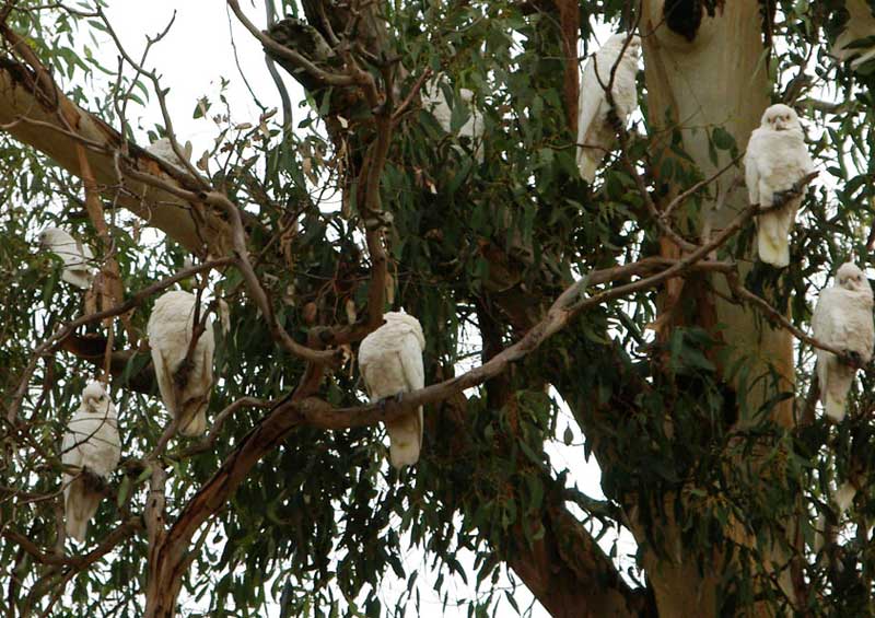 ■分布:オーストラリアおよびニューギニア南部。 ■生態:体長36cmから39cmで、しばしばモモイロインコも交えて数千匹で群生する。通常は木の上で夜を明かし、耳をつんざくような甲高い鳴き声を発して、早朝に餌を求めて飛び立つ。主に地面上で小麦や大麦等の作物の種子を食べる。そのため、オーストラリアでは害鳥とされており、住処となる木が破壊される。 <Wikipediaより> | |