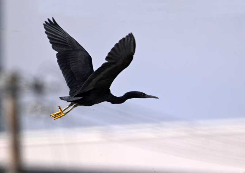 探鳥記 ◆2026-2-12 銚子漁港 最初クロサギを見つけたときは向かいの堤防の下だった。ほぼ350m離れている。肉眼ではカラスと見分けがつかない。 仕方なく2倍テレコンを使って1600mmとして撮影したが、AFの精度と速度には満足できなかった。 ◆2024-2-26 ニューカレドニア シラサギは一羽も見かけなかった。 ◆2015-3-22 石垣島 川平湾の近くの海岸を流している時に見つけた。しつこく岩の隙間を狙って5分間に2匹の魚を捕えた。 ◆2013-12-4 ロタ島 ネッタイチョウやカツオドリを撮っている時になにやらサギらしき格好と飛び方の鳥を見つけた。後で調べたら白いクロサギと分かった。 ◆2012-10-16 楚洲/沖縄 ヤンバルクイナを探してヤンバルの森の中の車道を走っているうち、急に開けて海にそそぐ小さな川に当たった。 なんとはなく河口付近を探しているとイソシギが一羽見つかったが、海と川が合流するところにこのクロサギがいた。沖縄には白色型のクロサギがいると聞いていたが、これは名前の通りクロサギである。 静かに近寄ったが、人家の近くには来ない野生のサギは警戒心が強く、遠方の波消しブロックの上に飛び去った。 後日地元のバーダーにこの話をしたら、「沖縄では珍しい」といわれた。所変われば品変わるものである。 ◆2011-1-9 銚子漁港 再度訪れた銚子漁港からの帰り、犬吠埼を過ぎて外川漁港への途中の岩礁にふたたびクロサギを見つけた。岩礁の色と見分けがつきにくいが、友人NH氏の眼力で発見できた。 餌を狙っていたので十分時間があり、距離は遠かったがデジスコの威力を確認した。 ◆2010-12-23 犬吠埼 銚子漁港のカモメ群に圧倒され、他の種も見たいと犬吠埼に向かった。鳥影もなかったのでカメラも持たずのんびり岬の突端に行くと、岩礁の上になにやらサギの格好をした黒い個体がいるではないか。 「クロサギだ!!」と直感し、大急ぎで車に戻ってカメラを持ってきた。もうそこにはいなかったが、何かに追い立てられなければ遠くには行くまいと執念深く探した。やっと見つけて小躍りした。ただデジスコを構える暇はなかった。 | |