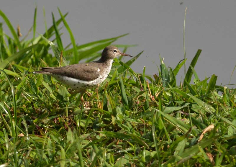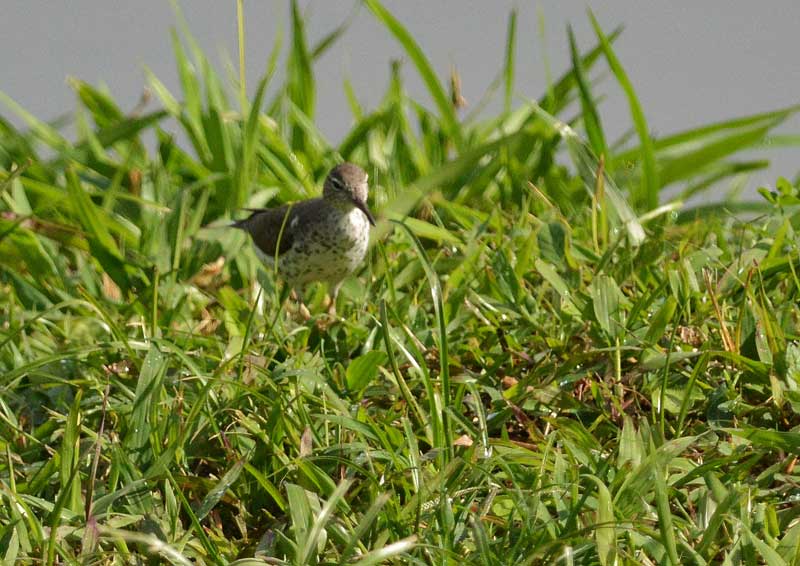 探鳥記 ◆2023-4-21 アメリカ エクアドルやこのアメリカの個体はこれから北へ向かって渡りをするのだろう。 ◆2013-4-25 エクアドル 川に沿って他の鳥を追っているうちに草の茂った河原を歩いているのを見つけた。日本のイソシギに酷似していると思ったが、後に図鑑で胸の斑紋からアメリカイソシギと識別した。 草が茂っており川原には降りられず、遠方からの撮影となった。 | |