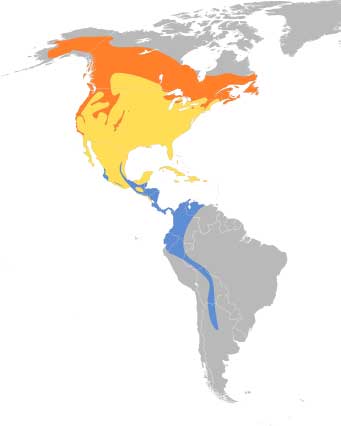 ■分布:カナダ、アラスカで繁殖し、冬季メキシコからアルゼンチンで越冬する。