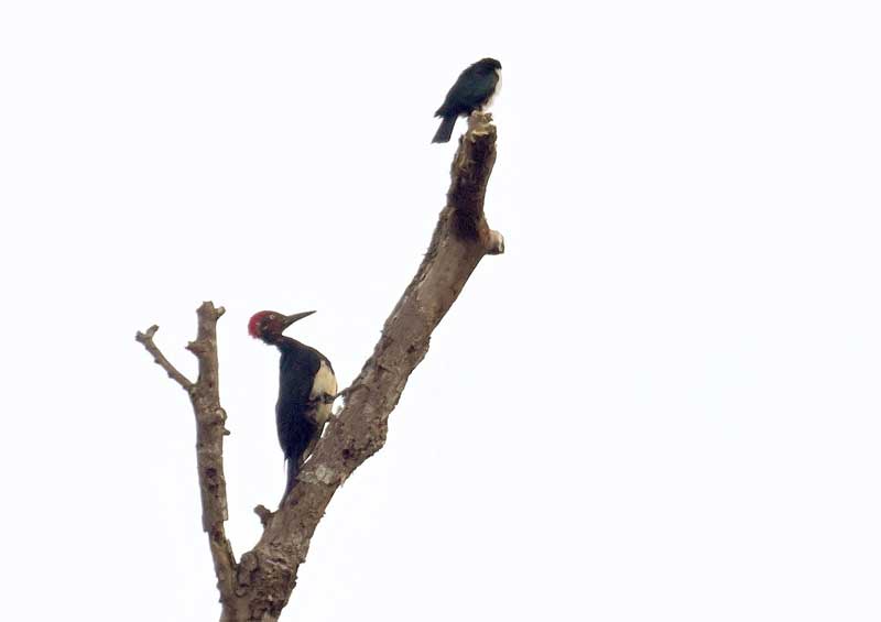 探鳥記 ◆2025-11-20 フィリピン 日本人のバーダーにとってキタタキは特別な意味を持つ。かつて絶滅した日本の野鳥の中で真っ先に挙げられる種だからである。最大の敬意が払われていたと感じる。 18日に初めて見られたとき、体の大部分は葉に隠れ赤い頭からようやくキタタキと識別できる酷い条件だった。翌日にはよい画像が撮れるとは知る由も無いことから大いに落胆した。 翌日、翌々日とガイドも特別な注意を払って見つけてくれたおかげで、かなり遠方であったがほぼ満足する画像が撮れた。 キツツキ類には5種出遇ったが、どうも現れる定番の枯れ木があるようだ。 | |